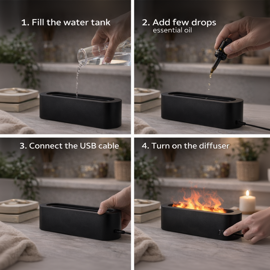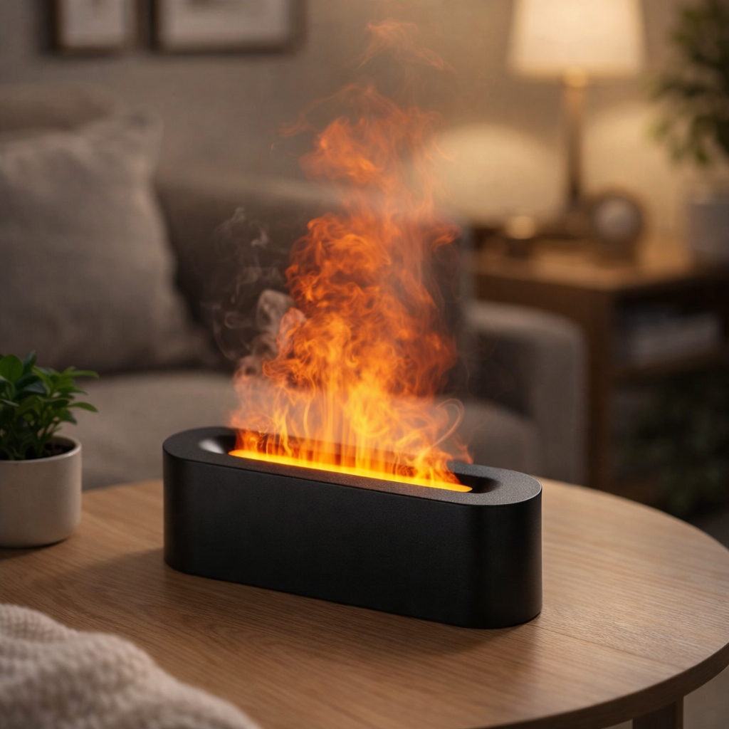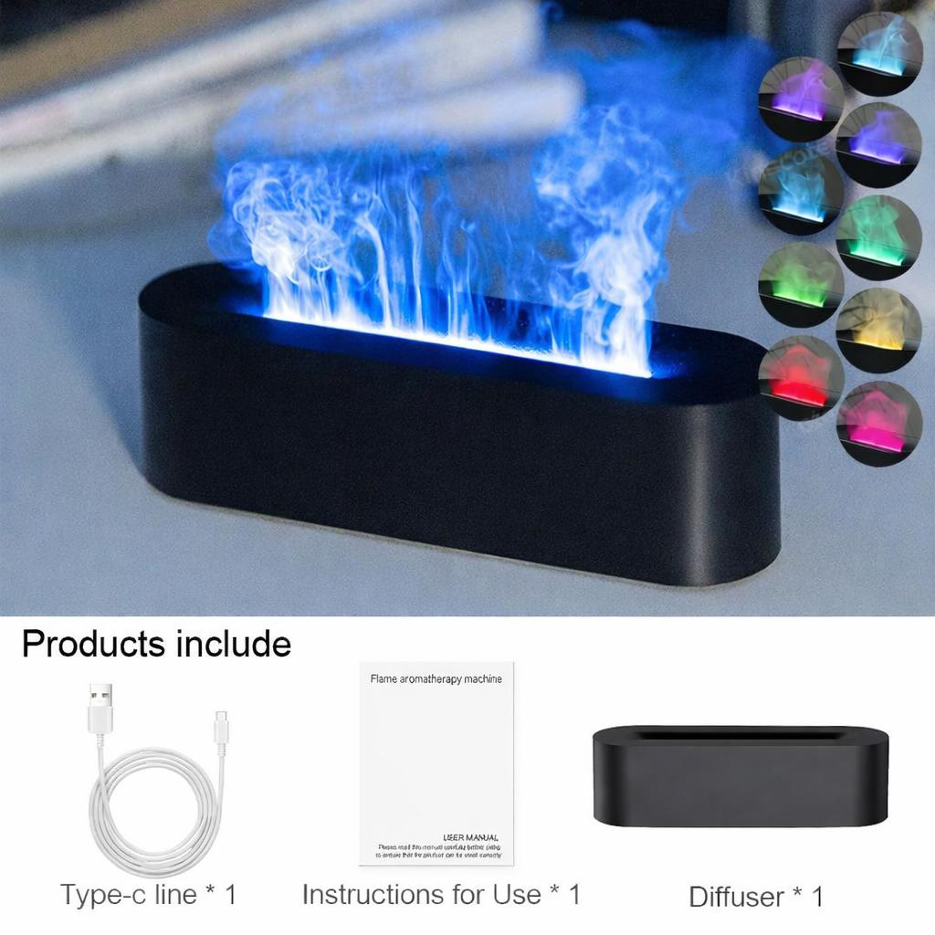 This stylish diffuser combines a realistic flame effect, aromatherapy, and air humidification to create a warm and relaxing atmosphere at home or in the office.